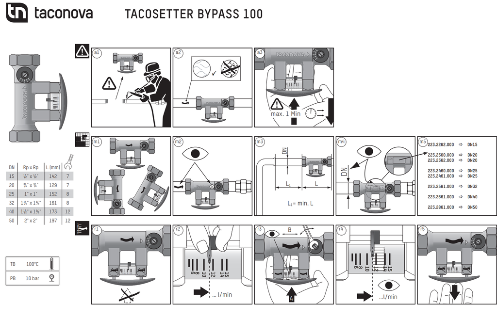 2Tacosetter bypass brass balancing valve with female thread and insulation box. Maximum temp 100°C.