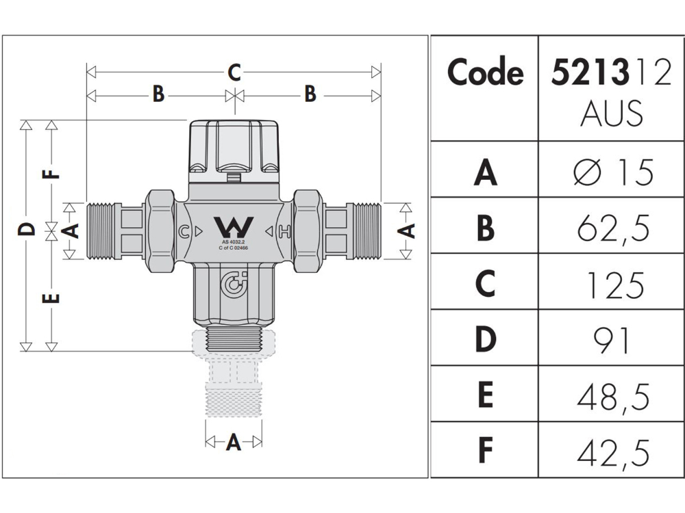 - AU Standards approved thermostatic valve with 15mm unions with Oring Flat face seals.