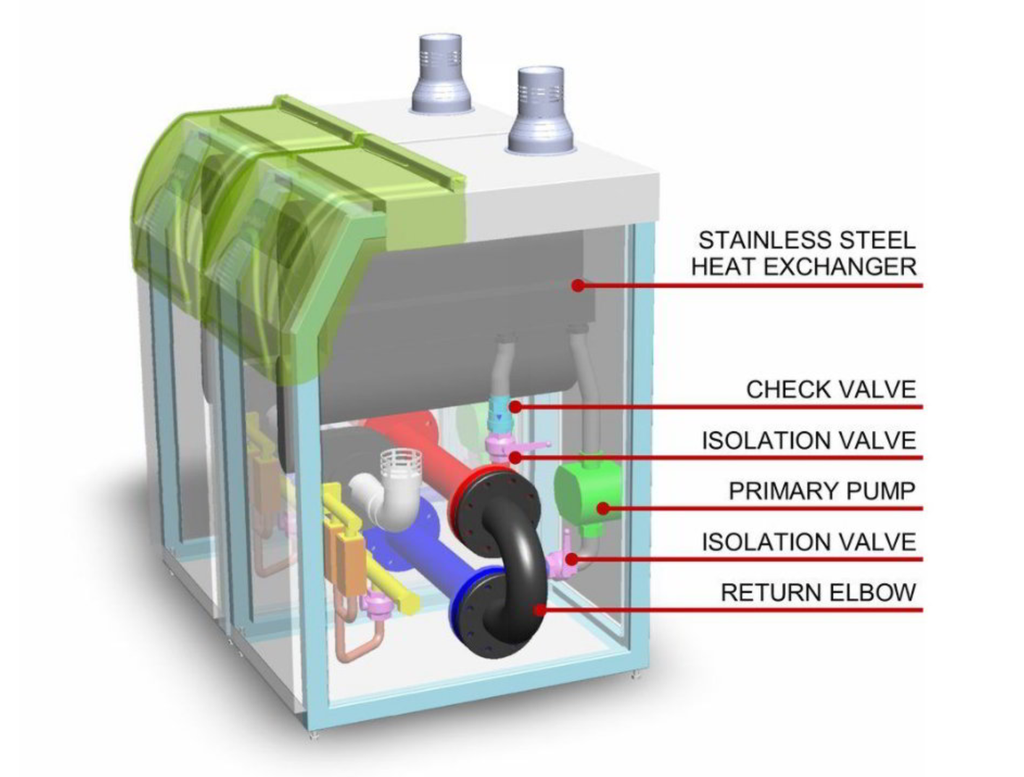 - Water heater heat exchanger is completely fabricated from stainless steel for a long service life and maximum reliability