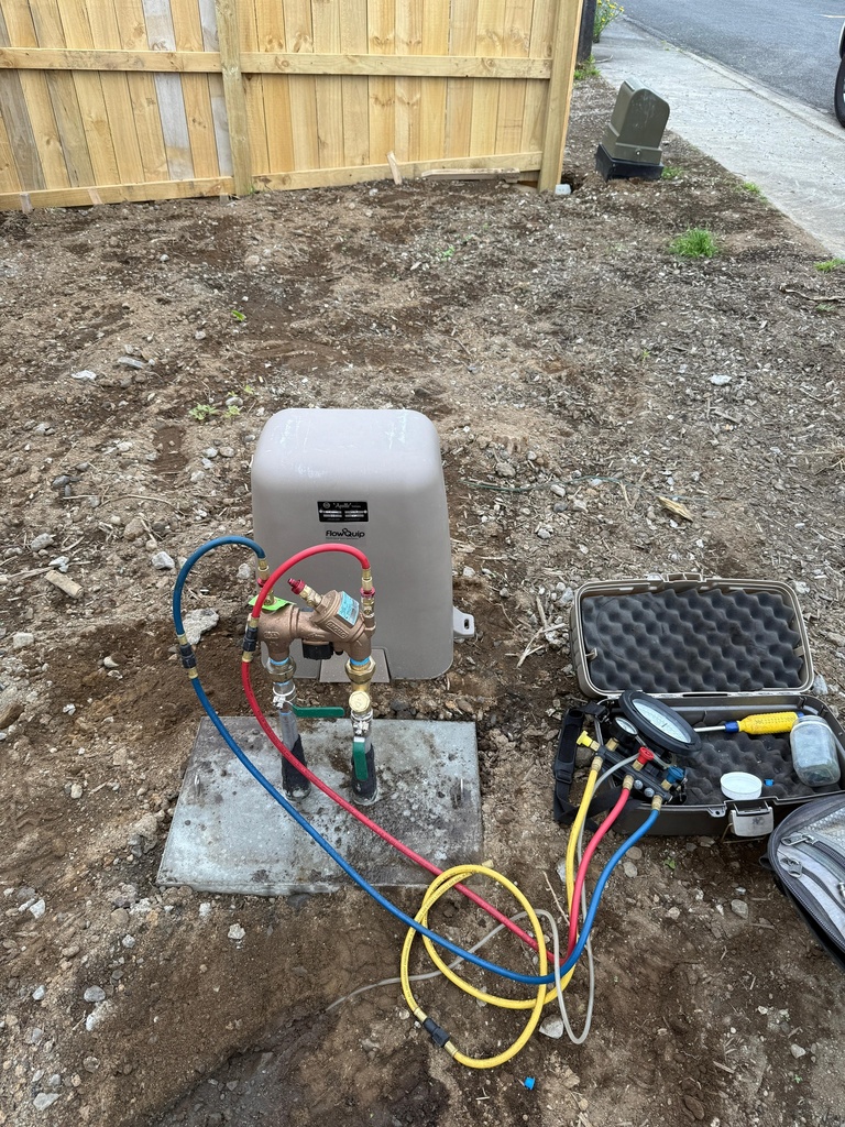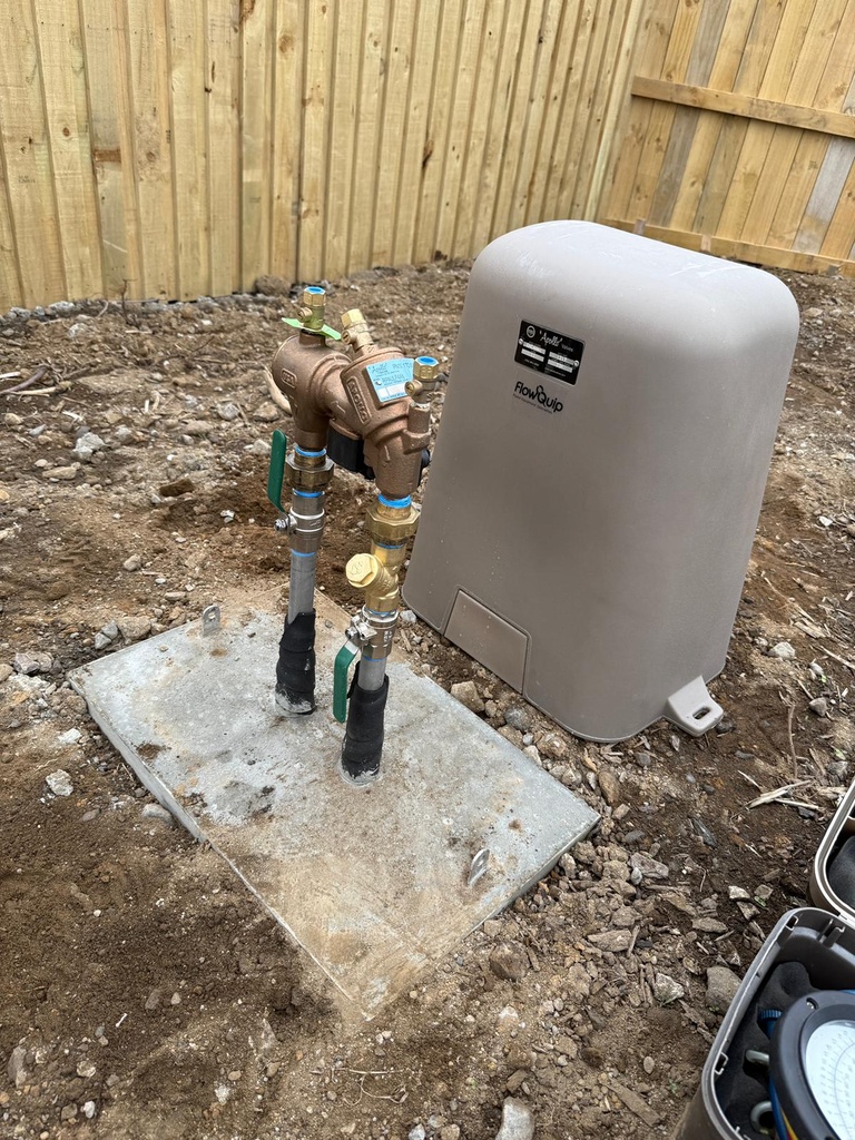 2RP4AN RPZ Backflow Compact Complete Assembly. Includes Backflow valve, valve train, SS risers, insulated & lockable enclosure. This allows for a easy plug & play - just add concrete bags solution.