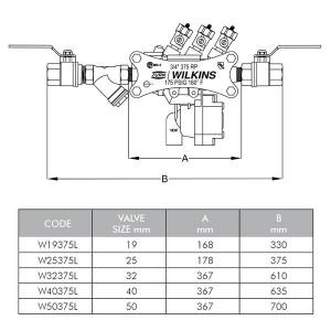 Wilkins/Zurn RPZ 375 Series Complete Assembly (unions included)
